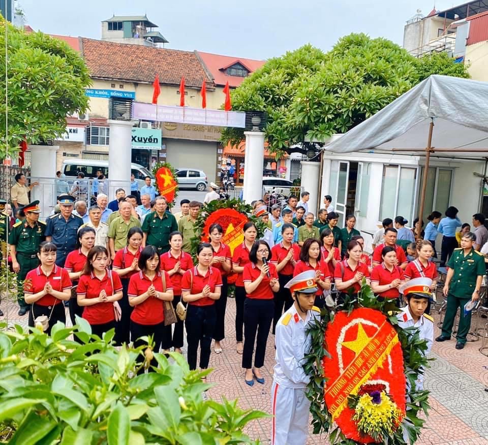 Hình ảnh: Cán bộ, giáo viên Trường Tiểu học Ái Mộ B viếng Đài tưởng niệm anh hùng, liệt sĩ phường Ngọc Lâm