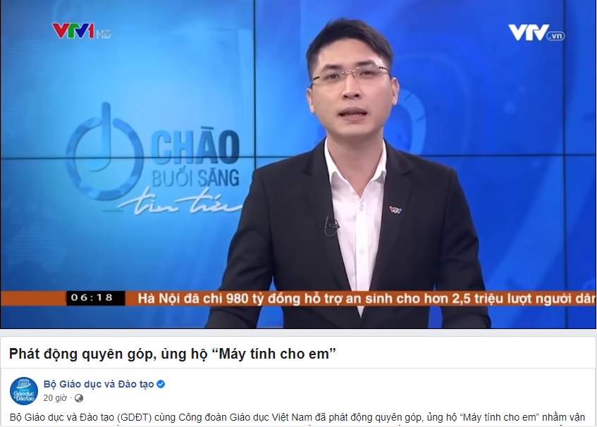 Bộ Giáo dục và Đào tạo (GDĐT) cùng Công đoàn Giáo dục Việt Nam đã phát động quyên góp, ủng hộ “Máy tính cho em” nhằm vận động, huy động mọi nguồn lực trong toàn ngành ủng hộ kinh phí, thiết bị học tập trực tuyến cho học sinh chưa có và không thể có khả năng mua thiết bị học tập trực tuyến.