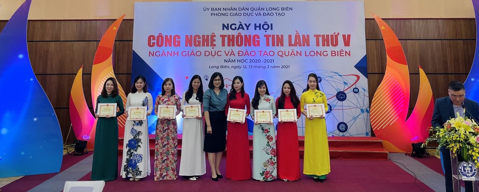 Với những ưu điểm và thuận lợi của việc ứng dụng CNTT, Ban giám hiệu nhà trường đã triển khai và thực hiện nghiêm túc Kế hoạch chỉ đạo của Phòng GD&ĐT quận Long Biên về việc tham dự “Ngày hội công nghệ thông tin” Ngành GD&ĐT quận Long Biên lần thứ V năm học 2020 - 2021. Nhà trường đã tổ chức Ngày hội CNTT cấp trường với 100% CB, GV, NV tham gia, lựa chọn được 06 Bài giảng E – learning dự thi cấp Quận, trong đó có 02 bài giảng được lựa chọn dự thi cấp Thành phố. Ba đồng chí (02 giáo viên và 01 nhân viên) tham dự phần thi “Kỹ năng sử dụng CNTT”, đồng thời tham dự thi “Trưng bày sản phẩm có ứng dụng CNTT” trong Ngày hội CNTT do Phòng GD&ĐT tổ chức vào ngày 12 và 13/3/2021.