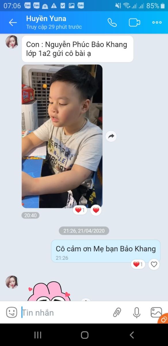 Hình ảnh: Phụ huynh gửi bài thực hành của con tới giáo viên