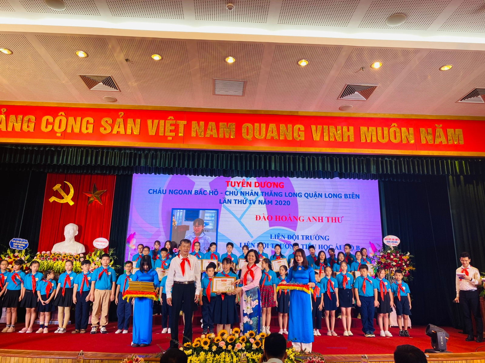 Học sinh Đào Hoàng Anh Thư đại diện cho đội viên, nhi đồng của Liên đội được tuyên dương Cháu ngoan Bác Hồ - Chủ nhân Thăng Long Quận Long Biên lần thứ IV năm 2020.