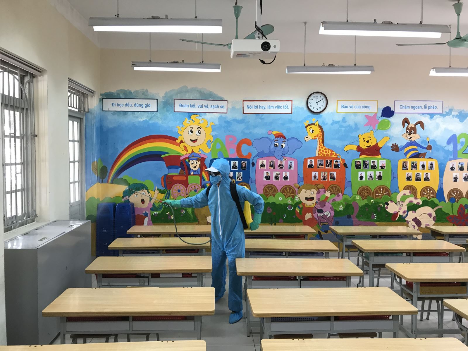 Thực hiện Kế hoạch số 316/KH – UBND ngày 31 tháng 8 năm 2020 của Ủy ban nhân dân quận Long Biên, ngày 12 tháng 9 năm 2020, Ban giám hiệu đã chỉ đạo phun khử khuẩn môi trường toàn bộ các phòng học, phòng chức năng và khung cảnh sư phạm toàn trường theo hướng dẫn của Bộ Y tế.