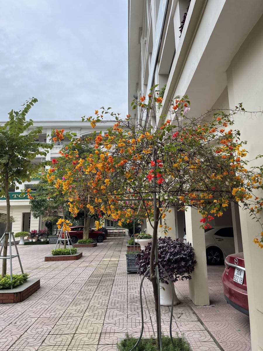 Quang cảnh khuôn viên trường có nhiều loài hoa đẹp, đủ mọi màu sắc sặc sỡ như được khoác một chiếc áo hoa mới. Khuôn viên trường từ nay sẽ rực rỡ hơn, tươi mới hơn không chỉ bởi những bông tươi khoe mình trong nắng mà còn bởi niềm vui, tiếng cười và thành quả của các em khi được tự tay làm đẹp cho ngôi trường mến yêu của mình. Với tinh thần đoàn kết và thành quả chăm sóc của các em học sinh các lớp phong cảnh trường đã được tạo cảnh quan môi trường xanh - sạch - đẹp hơn.